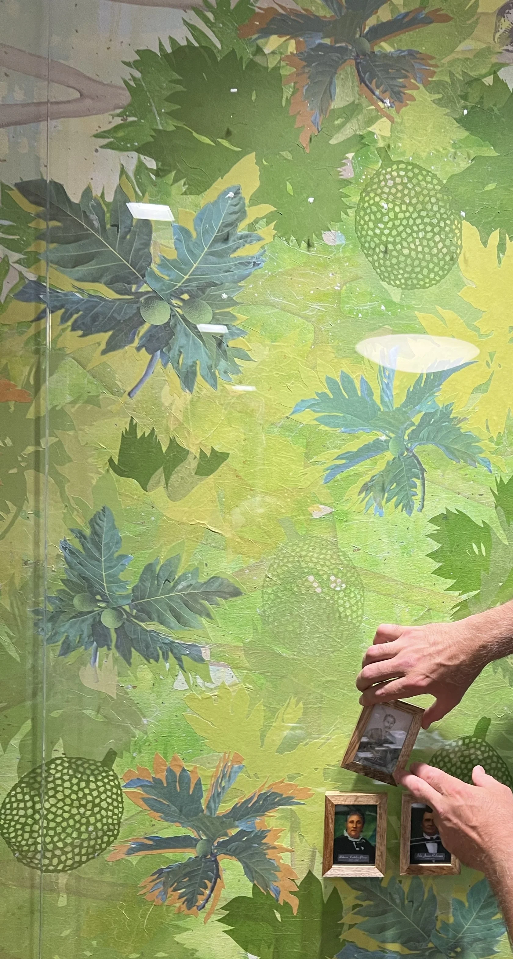 Robinson Estate Trust Office, Family Tree 12' x 8', mixed media on canvas with Acrylic cover and attached photos.
